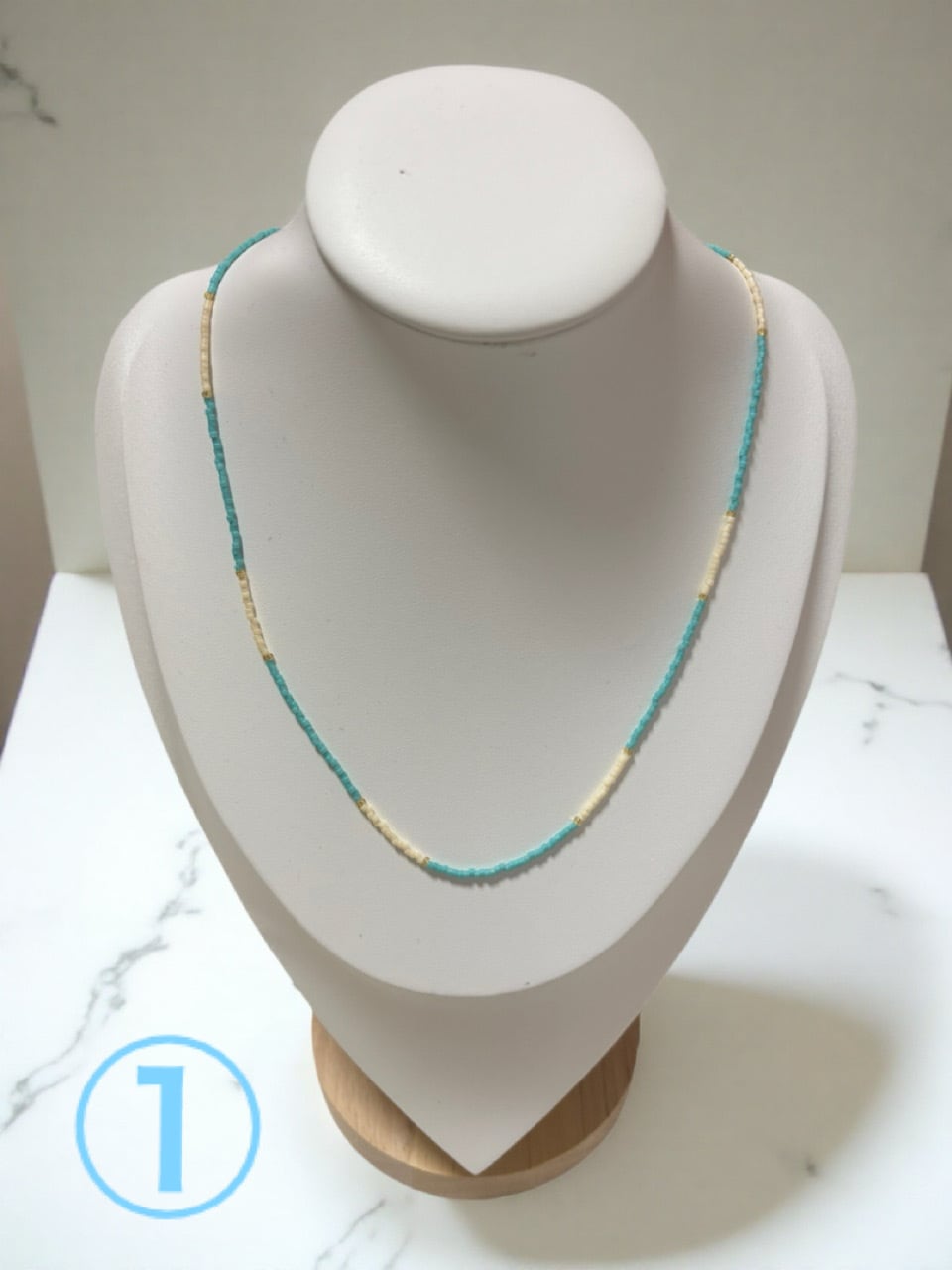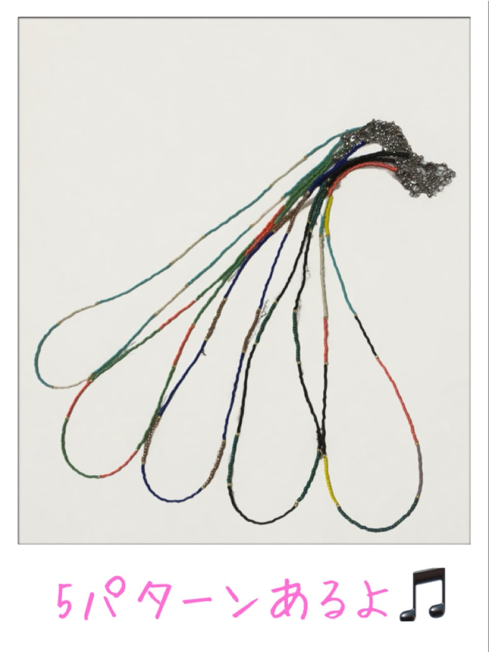 5パターンあるビーズのダブルカラーネックレスです。前回は即完だったので、少し追加しました。